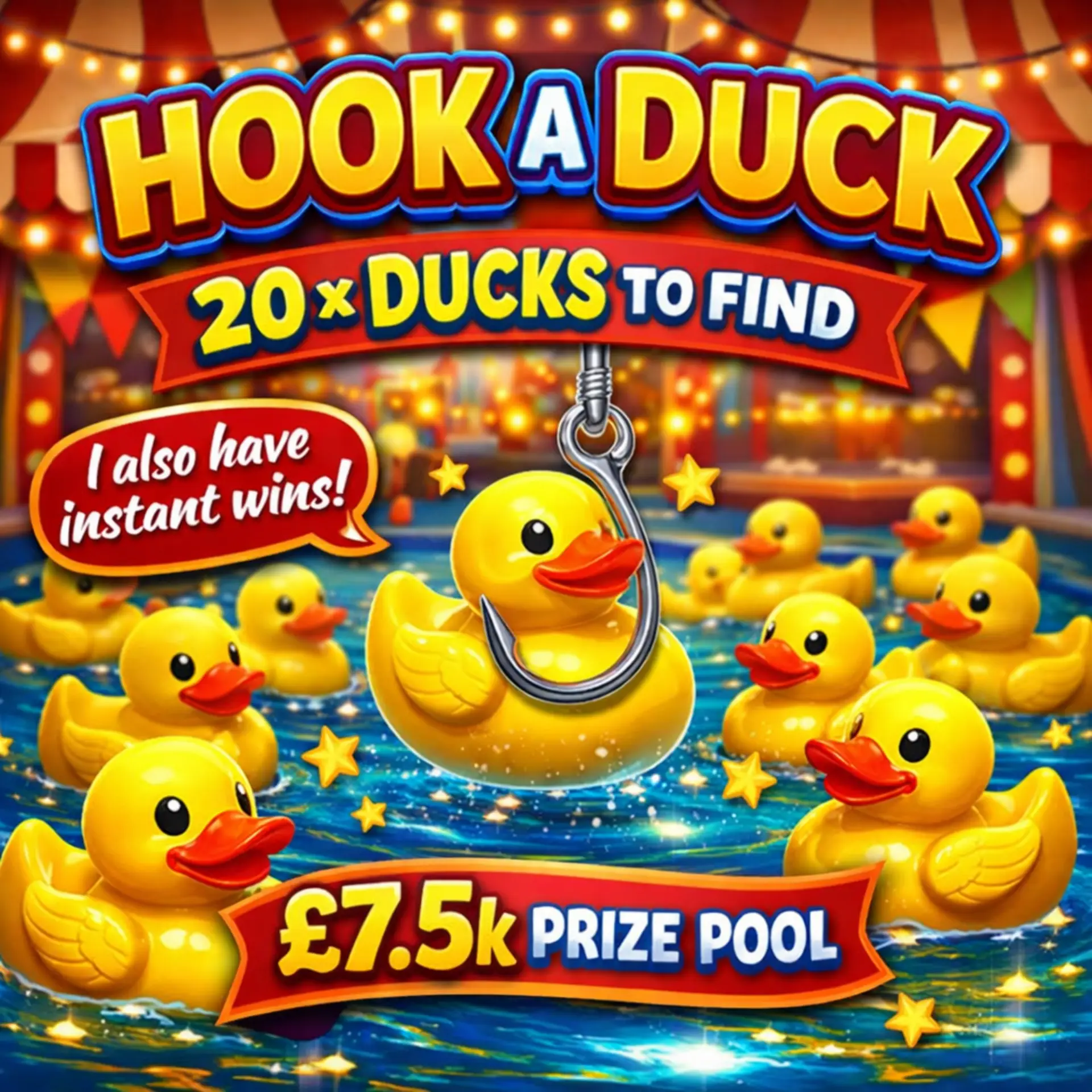 Get ready to HOOK-A-DUCK  because 20 sneaky ducks are out there, each concealing an INSTANT CASH PRIZE just waiting to be found! 👀🔥