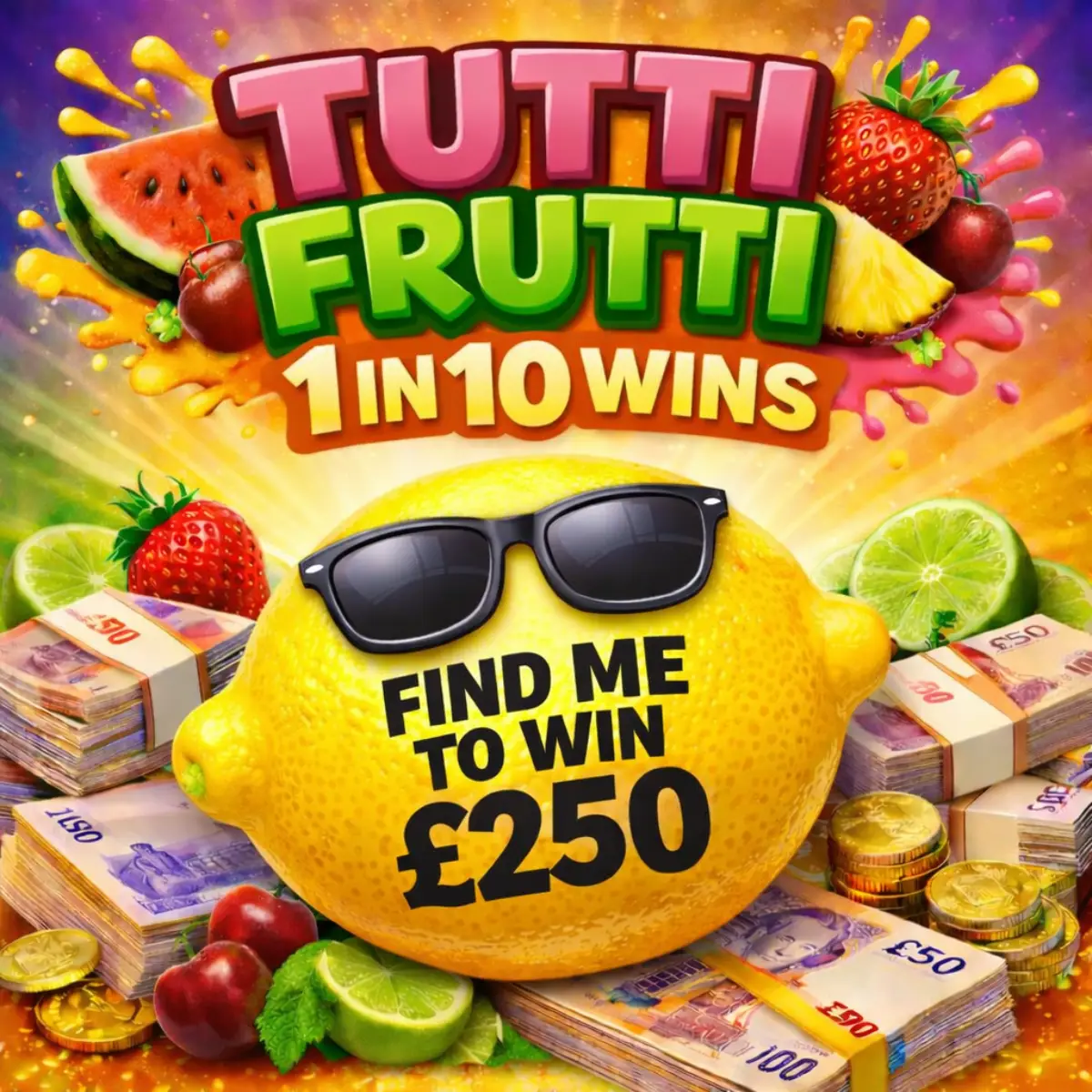 Get ready for a juicy cash splash! Our TUTTI FRUTTI competition is bursting with wins — with 1 in 10 tickets GUARANTEED to be a winner 💥