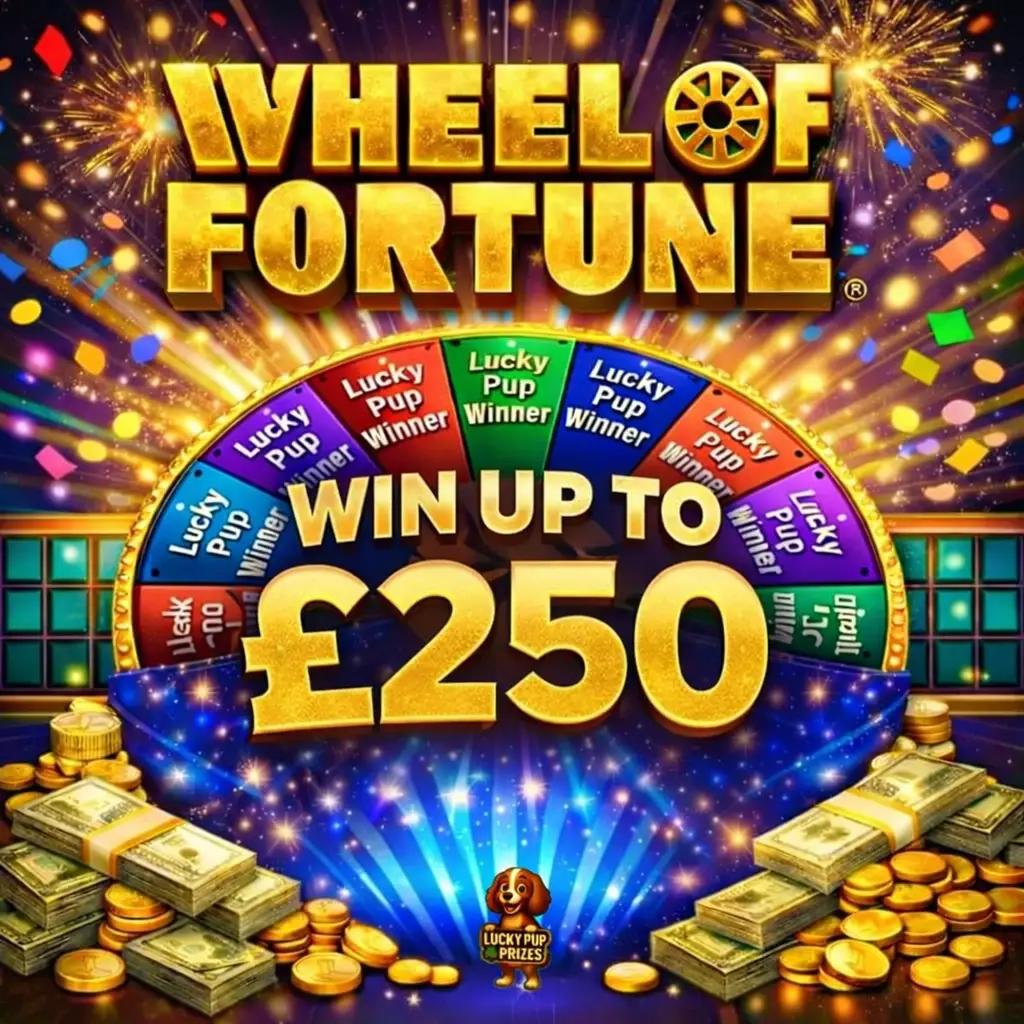 Wheel prizes: • £250 • £200 • £150 • £125 • £100 • £75 • £50 Spin it. Win it. Will fortune land on you?